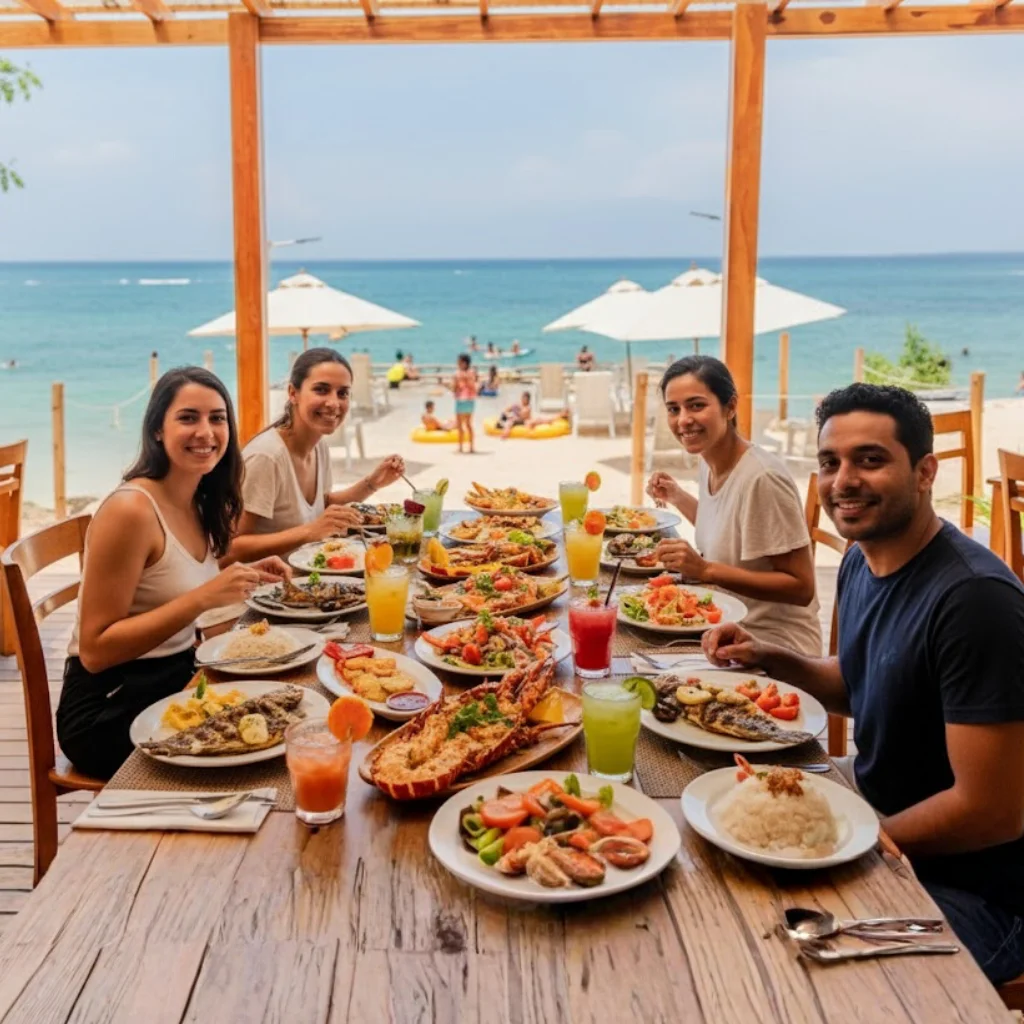 Delicioso Almuerzo Típico: Elige entre opciones de pescado fresco, pollo o vegetariano.